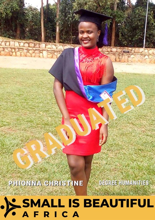 This is Phionna Christine, the very first student our mother funded through university. She studied Humanities and graduated in 2019. Phionna comes from an extremely humble background…